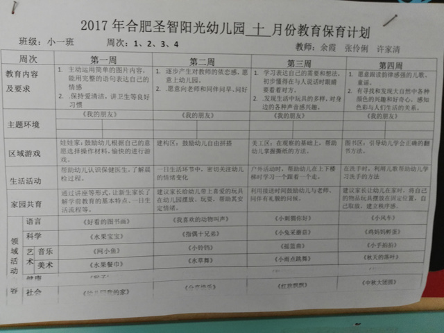 十月份月计划