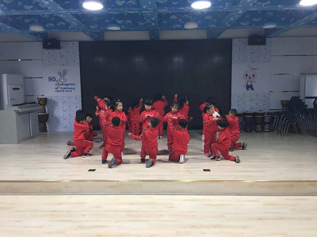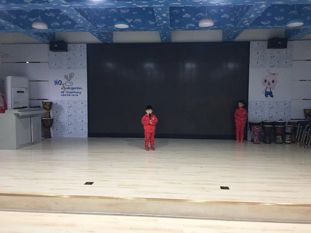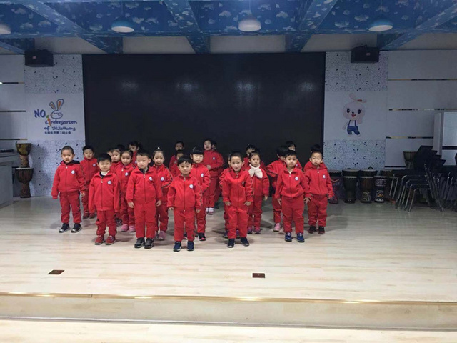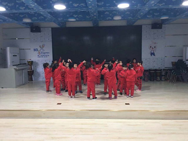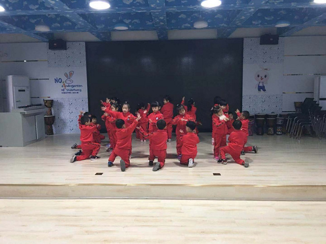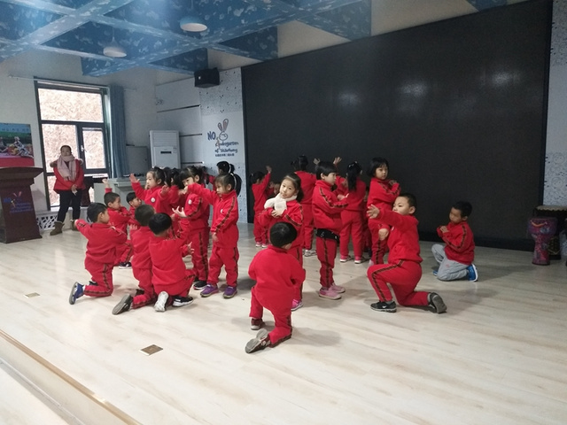 我们花二班小朋友一起表演了节目,集体舞《娃哈哈》。我们手拉手,和朋友跳舞、拍手、游戏。这是我们自己编的舞蹈哦。来给我们鼓鼓掌吧。