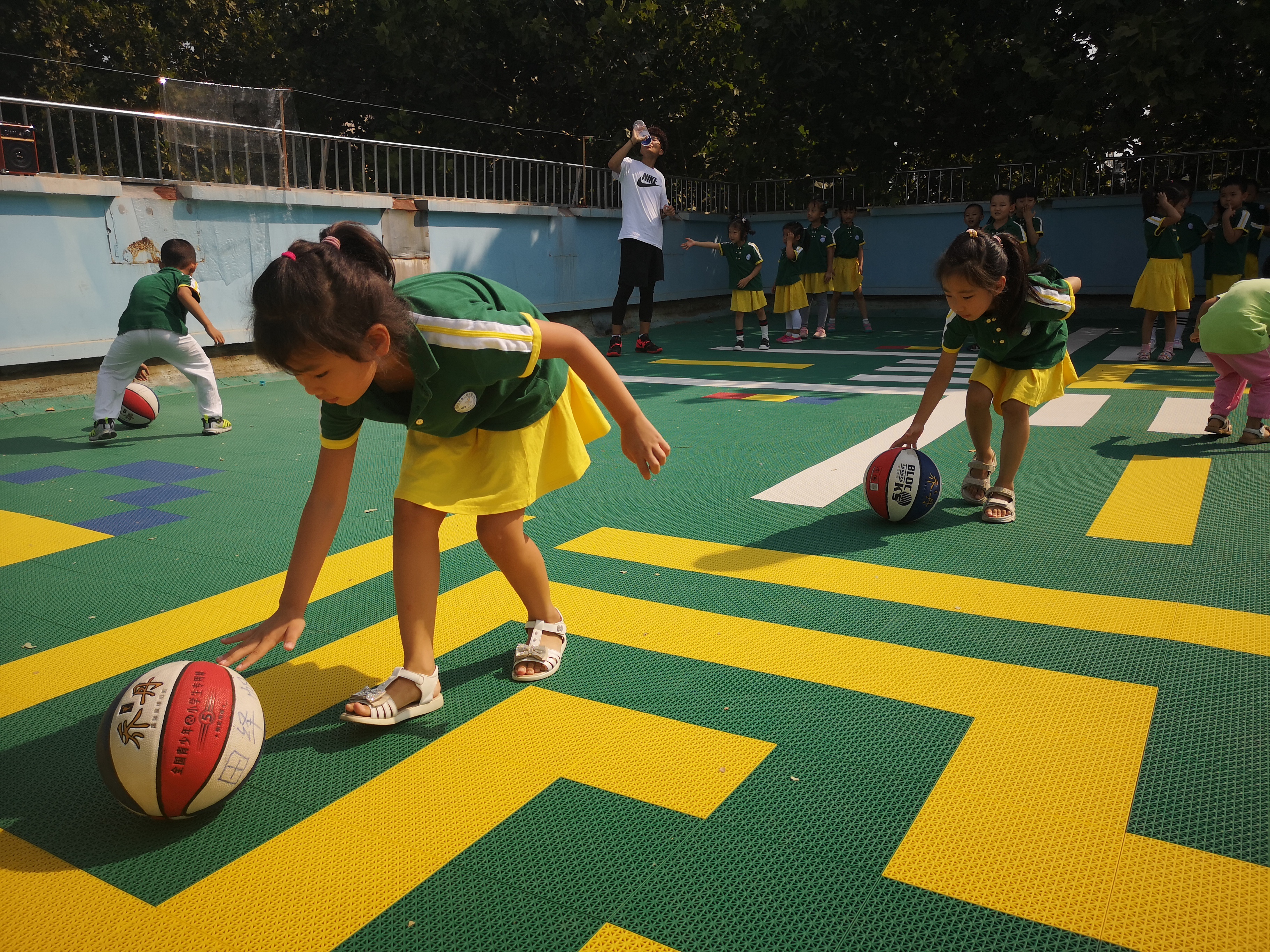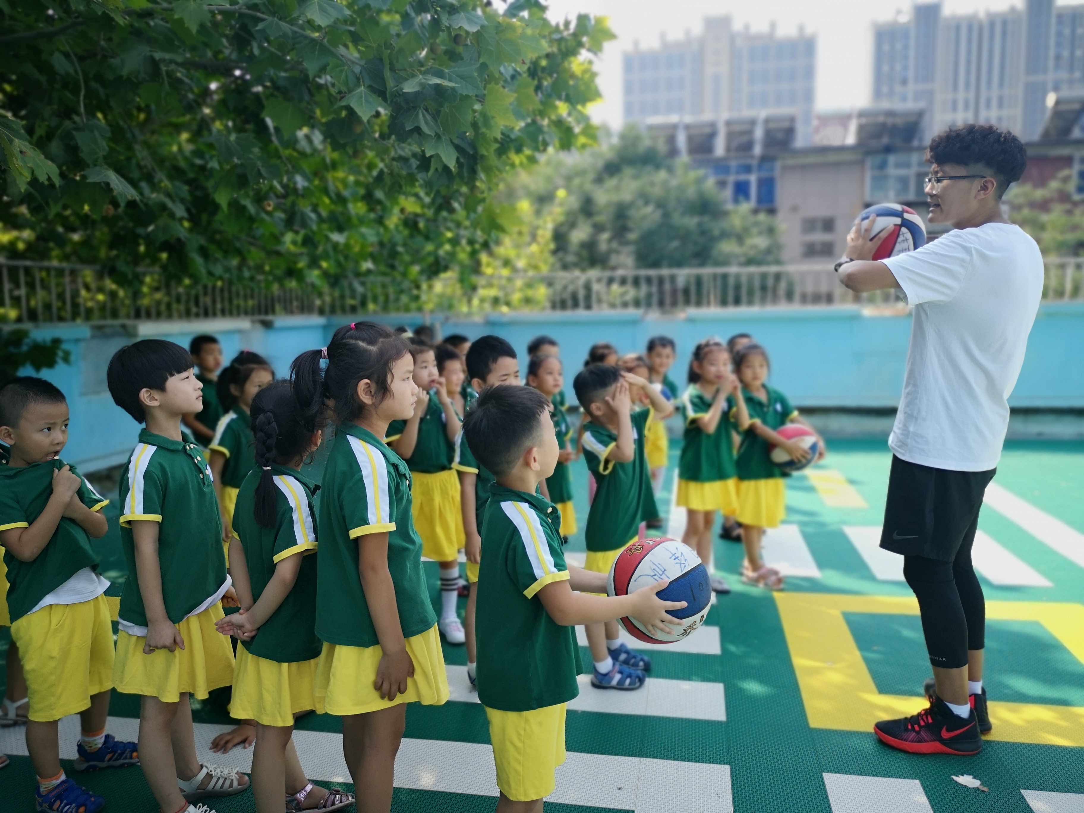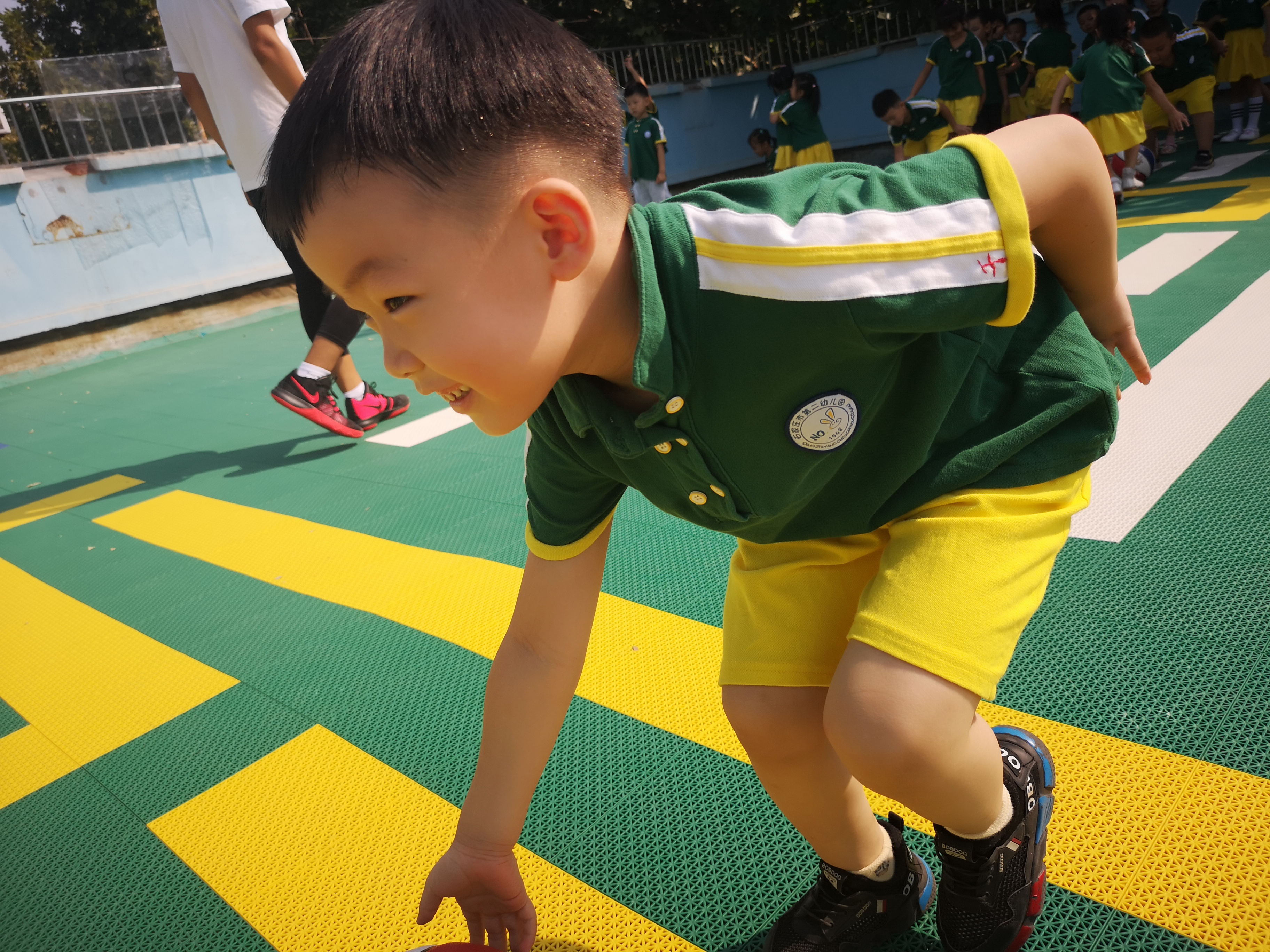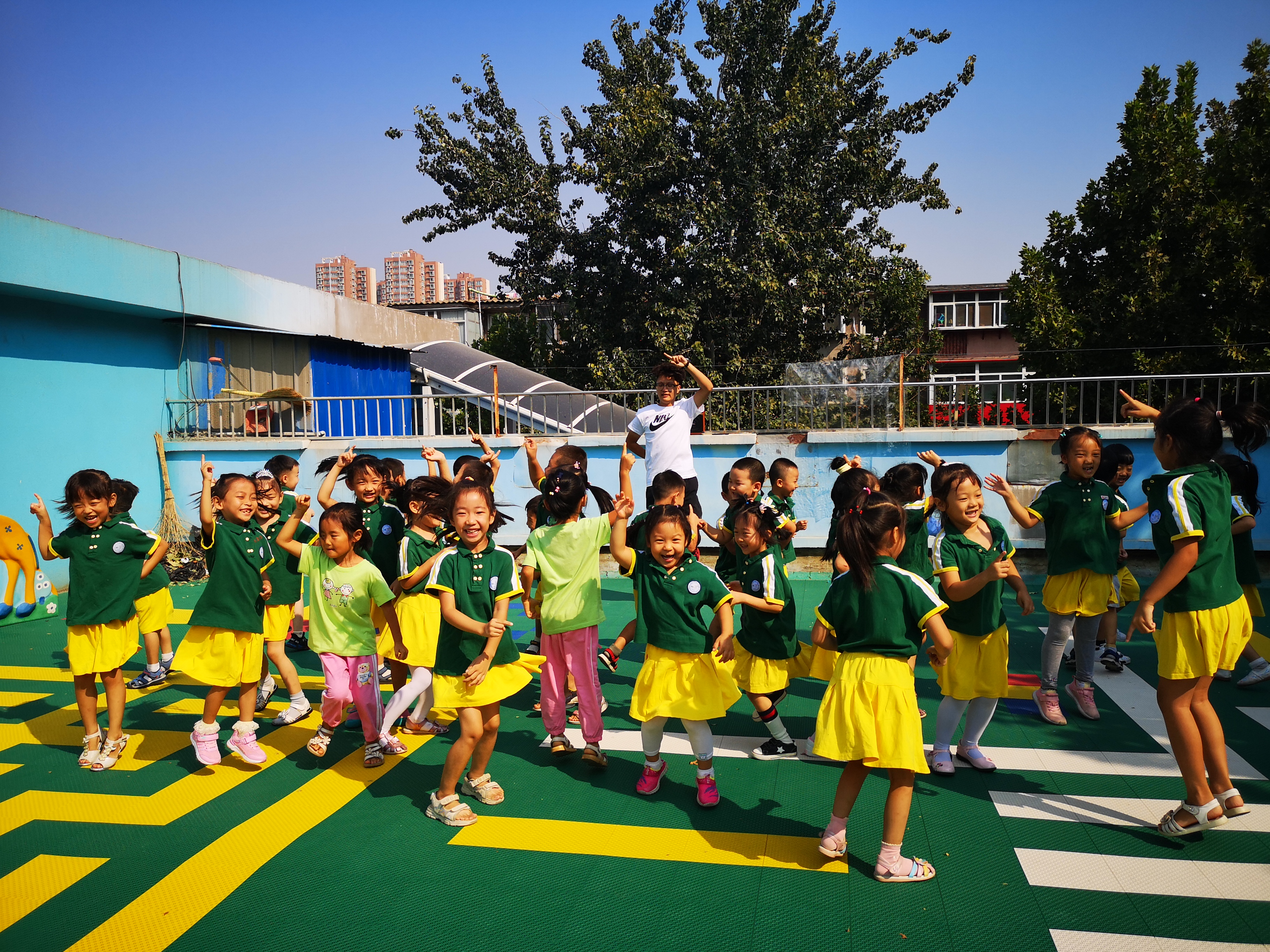 经过漫长的两个月假期,我们已经升到大班啦,不仅个子长高啦,身体的素质也变得更强壮了,你看,我们的协调性也更加灵活了。新的学期我们迎来了第一次的体能活动,看到久违的天才哥哥更是兴奋不已,天才哥哥不仅带我们做好玩的律动操,还带我们玩各种器械组合的运动游戏,我们在玩中学,玩中锻炼了身体,一节课下来乐此不疲,不亦乐乎。 为了保证幼儿的户外活动时间,提高幼儿适应季节变化的能力,根据气温变化我们每天的户外活动一般都会在两小时左右,其中体育活动时间不少于一小时,体能运动是孩子们最喜欢的体育活动,通过游戏运动促进身体机能的发展和全身协调性的动作发展。
