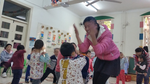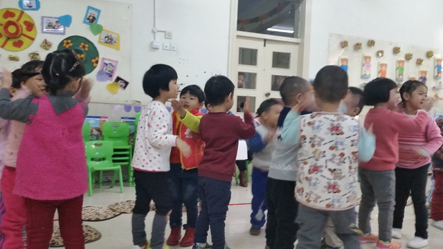 11初,李老师带孩子们进行了一次有趣的小班音乐活动——《包饺子》,这次活动选取的是一个典型的也是一个很简单的三段式回旋音乐《丰收之歌》。孩子们跟着好听的音乐并结合包饺子的故事情节:和面、擀皮、剁菜、调馅儿、包饺子、煮一煮等进行了丰富地音乐表演,就像身临其境,包饺子的兴奋萦绕在孩子们之间。整个活动过程中孩子们在熟悉音乐基本旋律的同时也感知了音乐的快慢节奏,音乐带给孩子快乐和灵性,孩子们像一群快乐的精灵一起舞蹈。