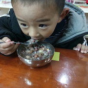 迫不及待吃一口,呀,烫!吹一