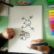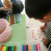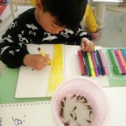 孩子们在观察蝌蚪外形特征,并