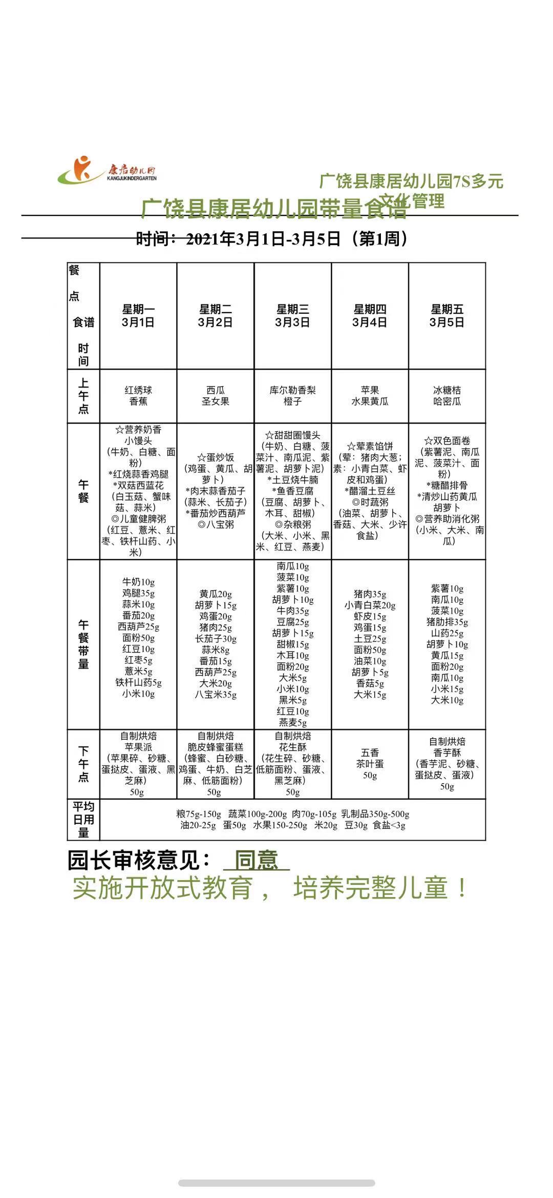 2021年第一周食谱