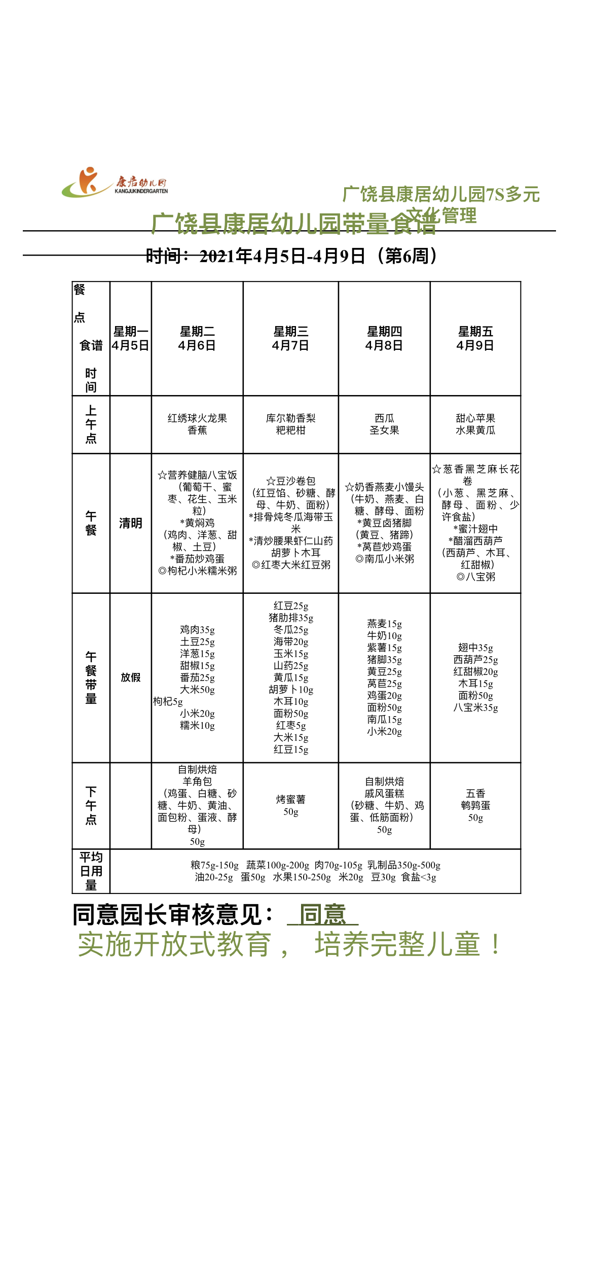 第六周食谱