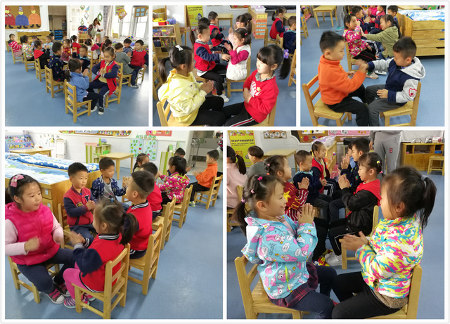 “拍手歌”。我们好开心啊!“瞧!我们的小脸蛋像不像小花?”