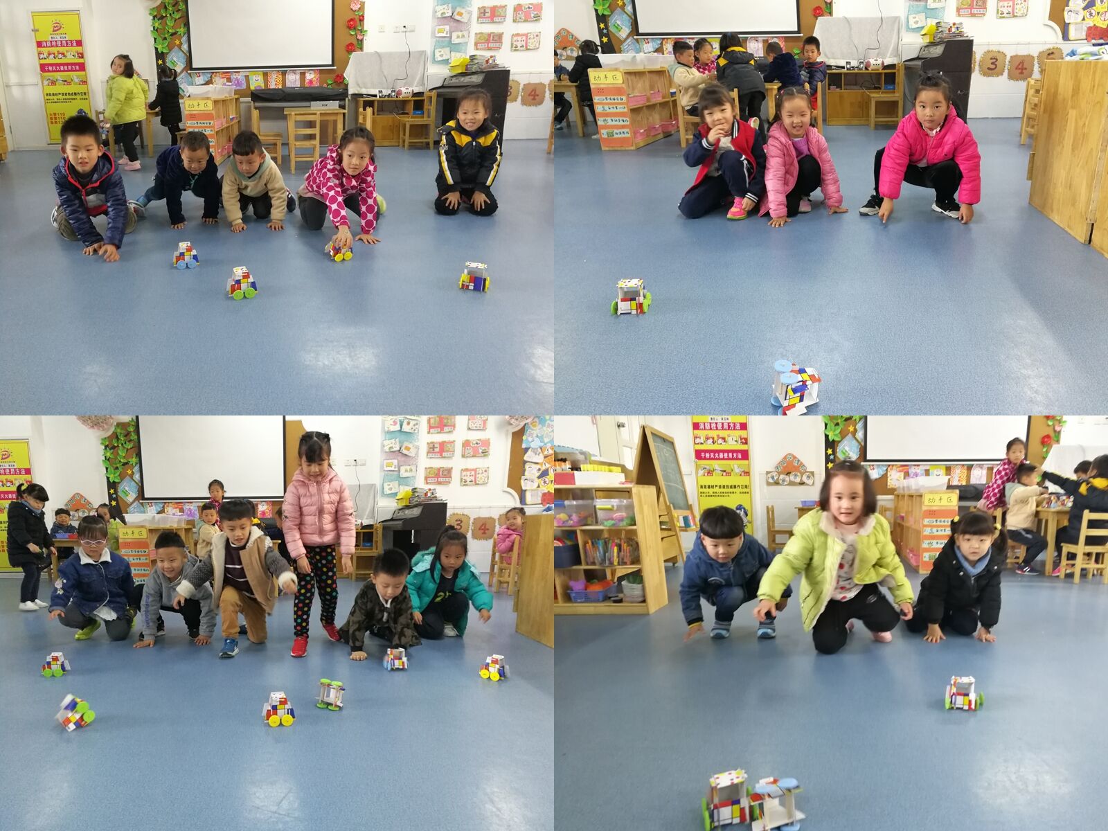 制作完成后,我们还进行了比赛。比比看,看谁的汽车跑的远。