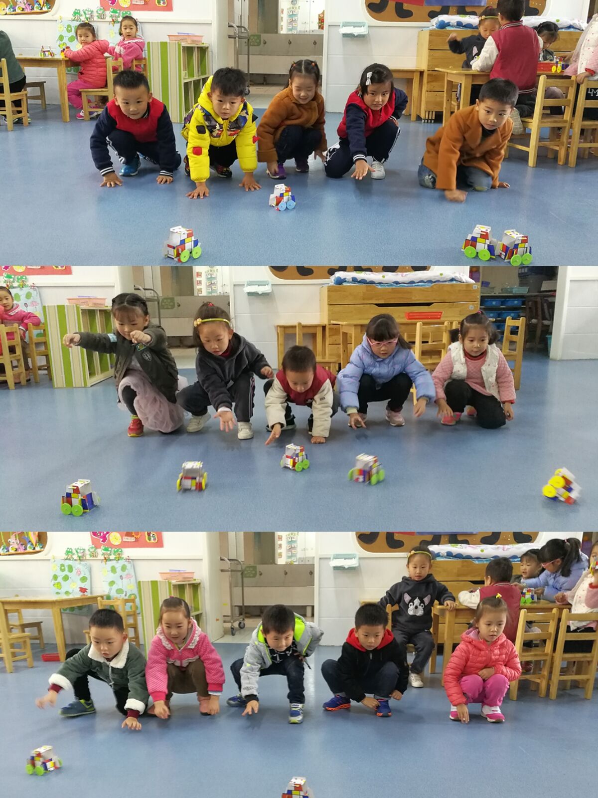 近期,孩子们自己动手制作了一辆小汽车,在制作过程中孩子们手部肌肉得到了锻炼。