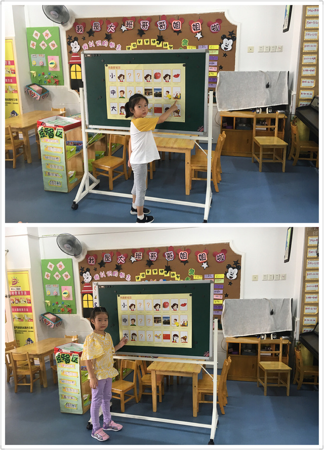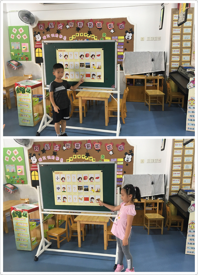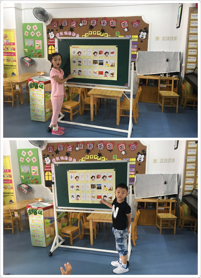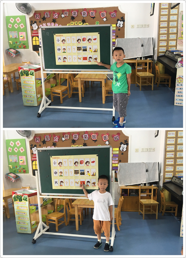 活动中,首先引导幼儿说说自己最爱的人和最喜欢的东西。幼儿各抒己见,有的说最爱自己的妈妈,有的说最爱自己的爸爸,还有的说最爱老师……幼儿最喜欢的东西也展开来了讨论和交流:我最喜欢苹果,我最喜欢小猫咪,我最喜欢画画……针对幼儿的发言,我给以充分的肯定,并鼓励幼儿听听录音机里的小朋友是怎样表示自己最爱和最喜欢的东西。幼儿又展开了讨论:小朋友说他也上大班了,长大了,最喜欢祖国妈妈,最爱国旗、国徽……然后出示图片,引导幼儿根据图标和文字的提示,学习儿歌,朗诵儿歌。