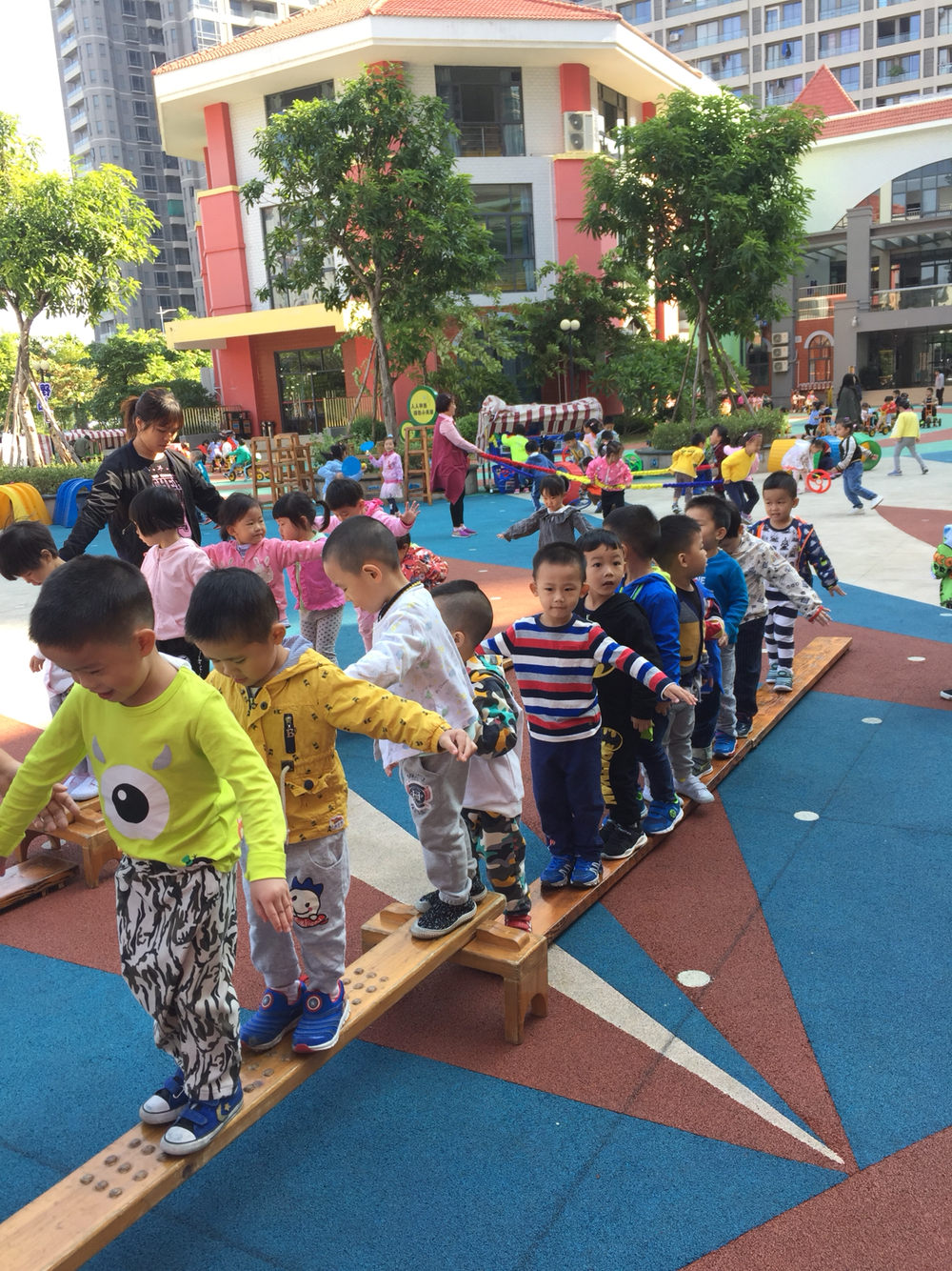 相片描述:自主游戏,过小桥。