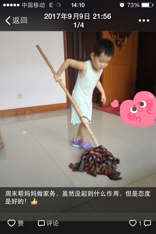 侯奕帆帮妈妈拖地板