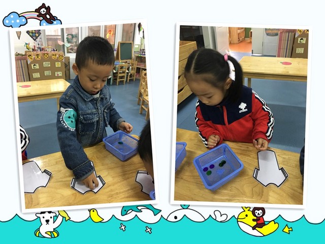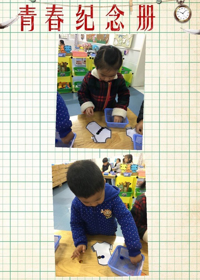 瞧,我在自己帮衣服设计美丽的装饰呢,两种颜色的亮片间隔着排列装饰的哦。