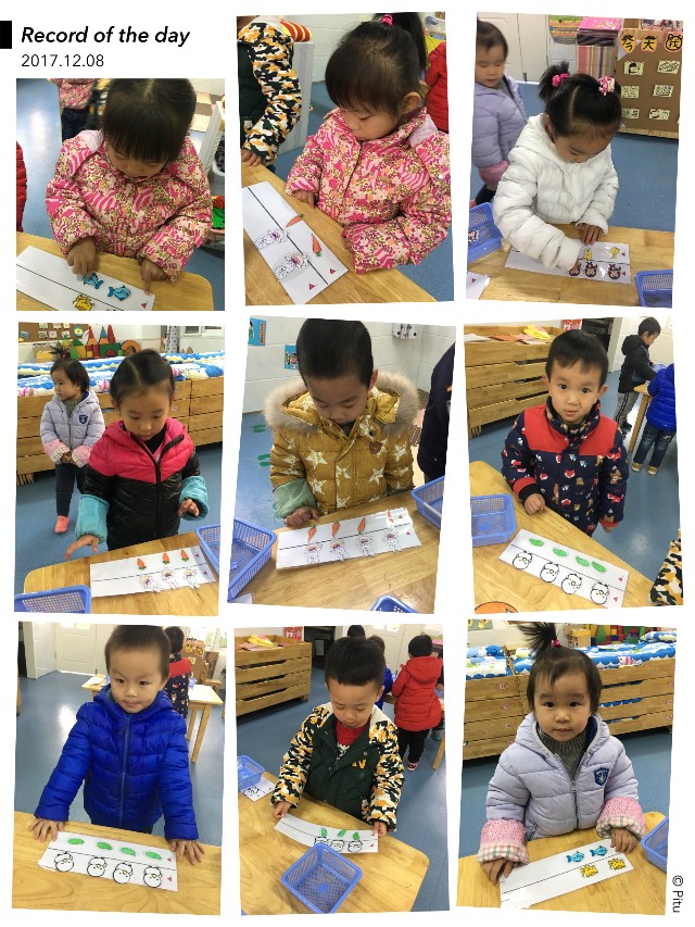 小朋友们对小动物们都很熟悉的,可爱的小兔子、调皮的小猴子、温顺的小猫咪、还有忠实的小狗都是我们生活中经常出现的。当然这些小动物喜欢吃什么小宝贝们也能够一一道来:胡萝卜、香蕉、小鱼。那么用这些来学习数学呢?今天我们小一班的宝贝们就用这些我们常见的小动物学习了一节数学活动“一一对应变成一样多”