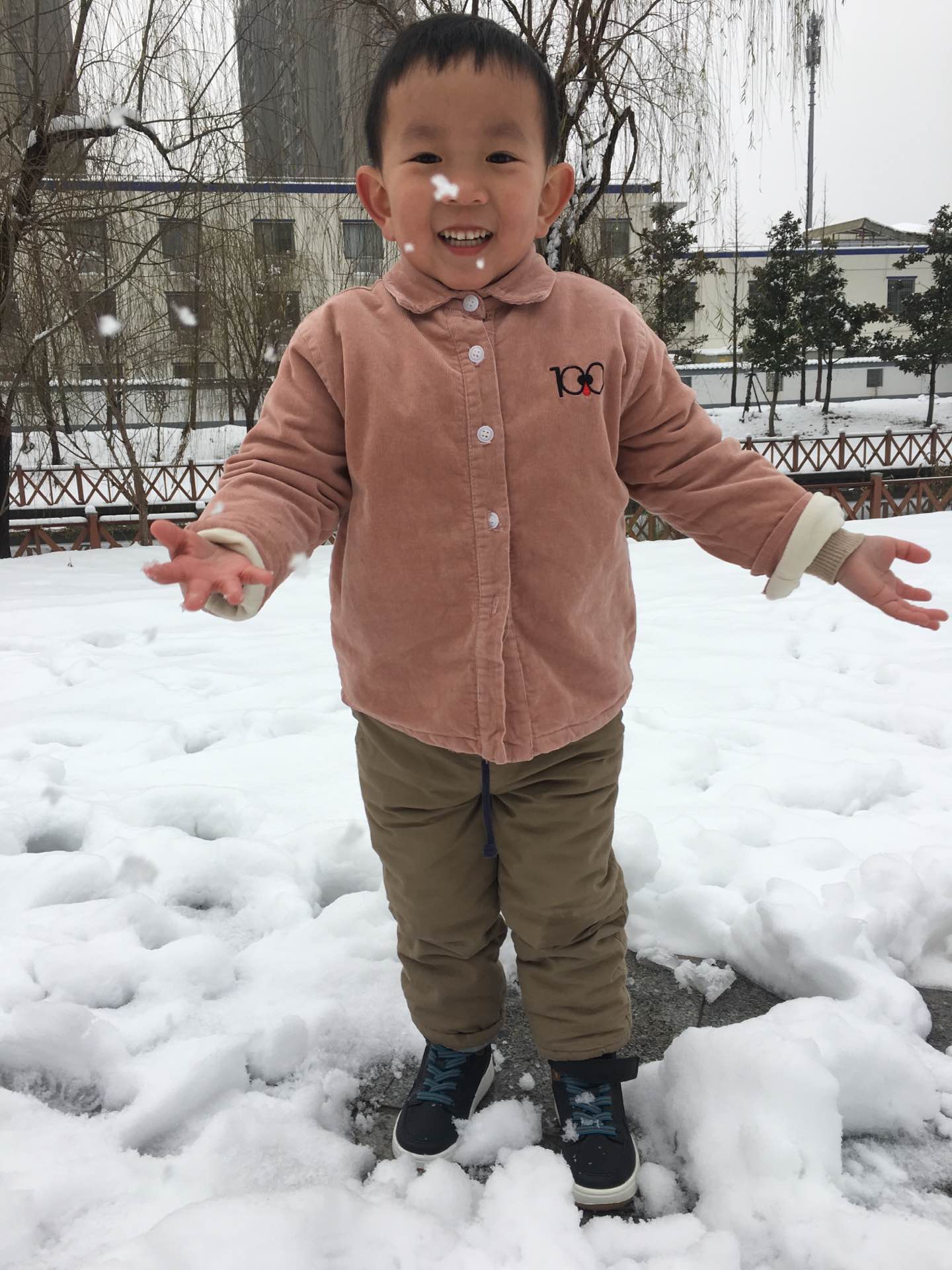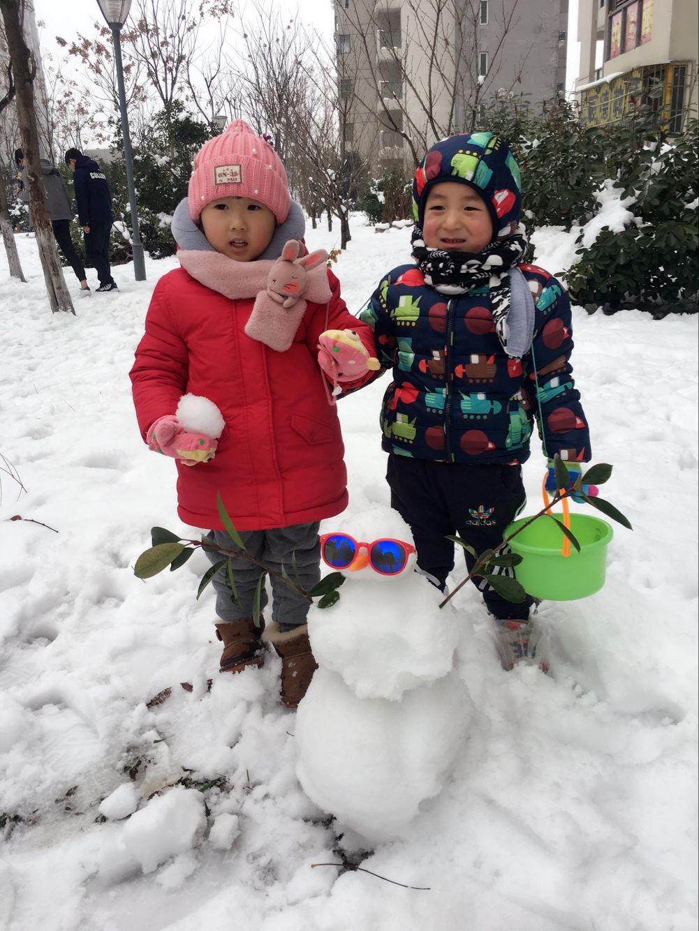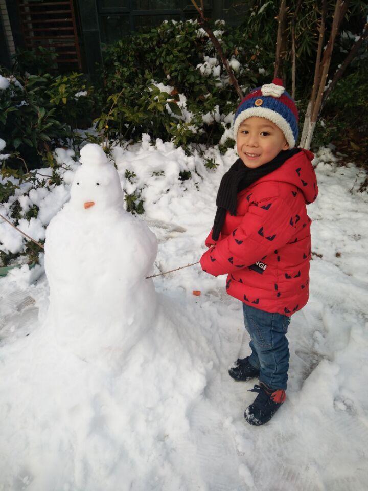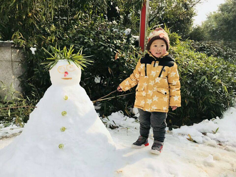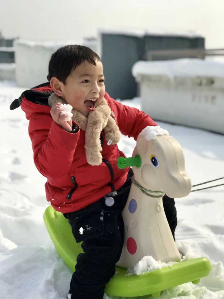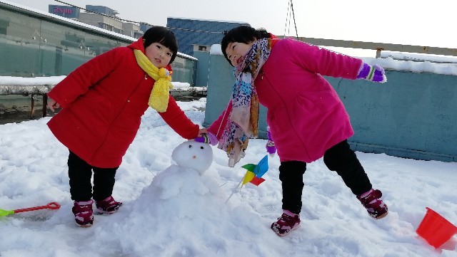 孩子们一会用暖和的小手迎接飘舞的如鹅毛般的雪花,一会从草坪上抓厚厚的雪揉捏成团互相对仗起来,也有和爸爸妈妈哥哥姐姐一起堆个雪人……孩子们在这第一场雪中尽情享受着大自然给予的快乐,体验着动手、动脑的成就感。