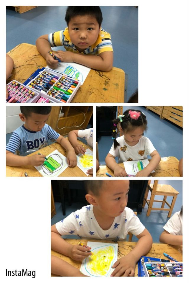 夏天到了,有好多好吃的水果,最典型的最能代表夏天的水果,圆圆的大西瓜,吃起来甜甜的,水分充足,孩子们最喜爱的水果之一。于是我们今天带领孩子们欣赏了各种各样的西瓜,红壤,黄壤,有籽,无籽等等。我们开展了一节绘画活动画西瓜。