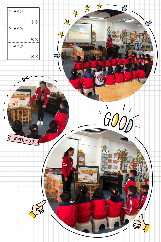 因此,我们开展了一节《田野里有什么》的社会活动,通过欣赏农村的田园风光,了解乡村生活。在欣赏美丽的农村的图片和挂图中,请孩子们说一说,看一看,讨论中,发现农村美丽的景象,各种不同的农作物以及农民怎样去收获等。在观看农民劳作的视频中感受农村的变化,激发孩子们对农民劳作的感激之情,萌发热爱农村的情感。