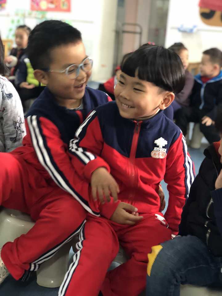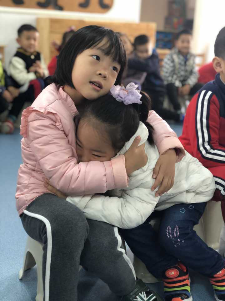 尤其是最后的一句“团结友爱亲又亲”孩子们都忍不住和自己的好朋友拥抱在一起了呢!