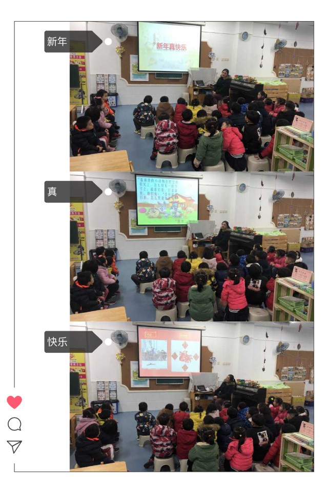 新年是什么?对于孩子们来说这是一个很宽泛不好解释的词语。在他们的心目中新年就是我们的传统春节,但是其实元旦也算是新年了,今天我们学习了社会活动《新年真快乐》,幼儿了解了元旦和中国传统春节的区别,知道了2019年的元旦就要来临。因为幼儿对新年还是十分期盼,新年对孩子们来说是快乐的、喜庆的,所以他们盼望着新年的来临。当问幼儿自己以前是如何过新年的,他们兴奋极了,都积极地举手发言,有的说在新年第一天吃好吃的,有的说在新年第一天出去玩。从孩子们已有的经验出发,让他们看图片了解全世界人们庆祝新年的方式时,孩子们瞪大了眼睛在看,了解到还有各种各样不同的方式来庆祝新年。