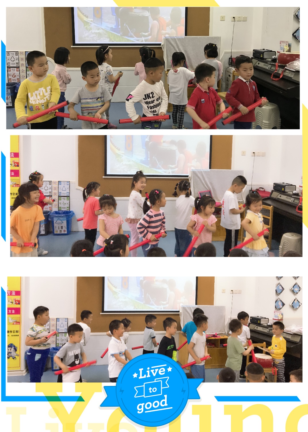 最后我们也来试一试吧,原来要做到统一是这么困难的一件事情啊!宝贝们都感叹道:“划龙舟真的需要很团结啊!”