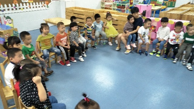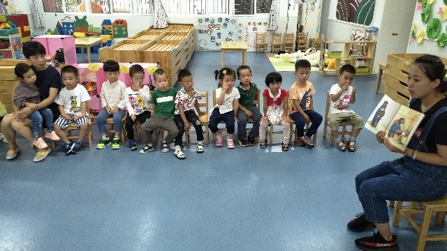 瞧瞧,宝贝们入园的第四天,都能乖乖的坐在自己的小椅子上,认真听林老师讲故事给我们听!
