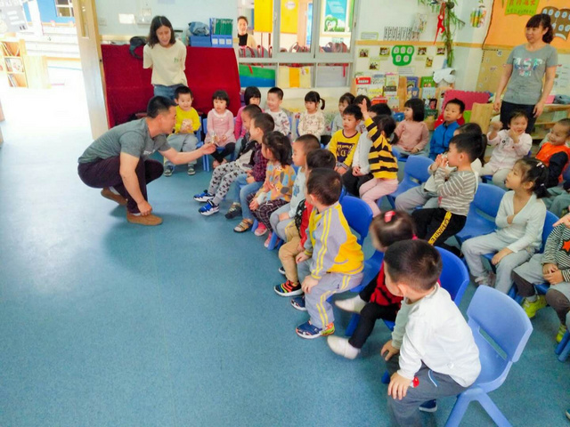 扣爸爸的故事让小朋友们听得聚精会神。