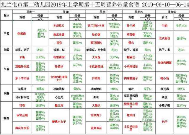 2019中班第二学期第十五周食谱