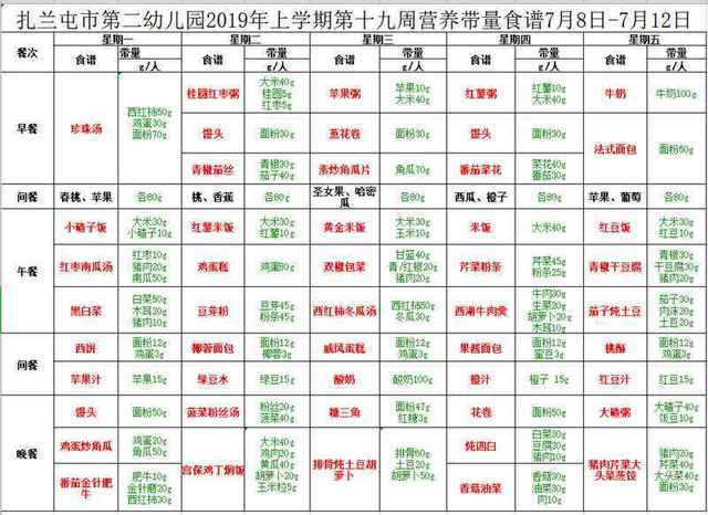 2019中班第二学期第十九周食谱