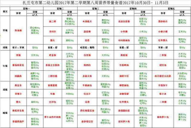 扎兰屯市第二幼儿园第八周食谱