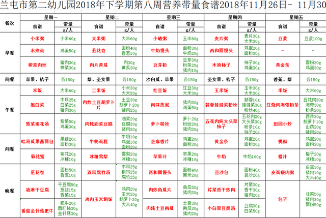 第八周营养食谱 11-26—11-30