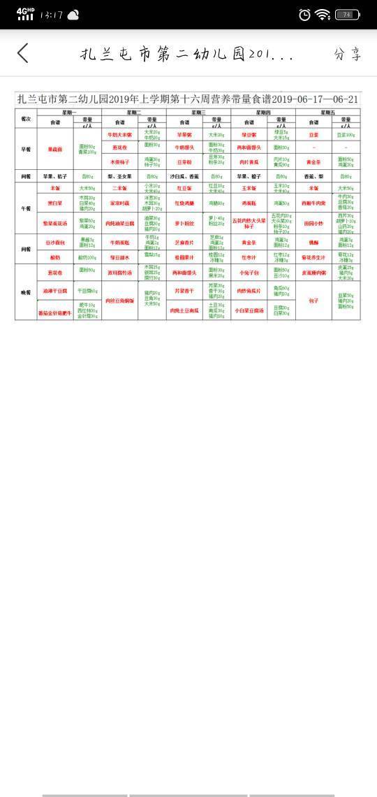 2019年第十六周营养食谱