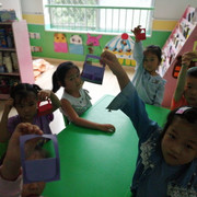看孩子们折的小书包多漂亮啊!