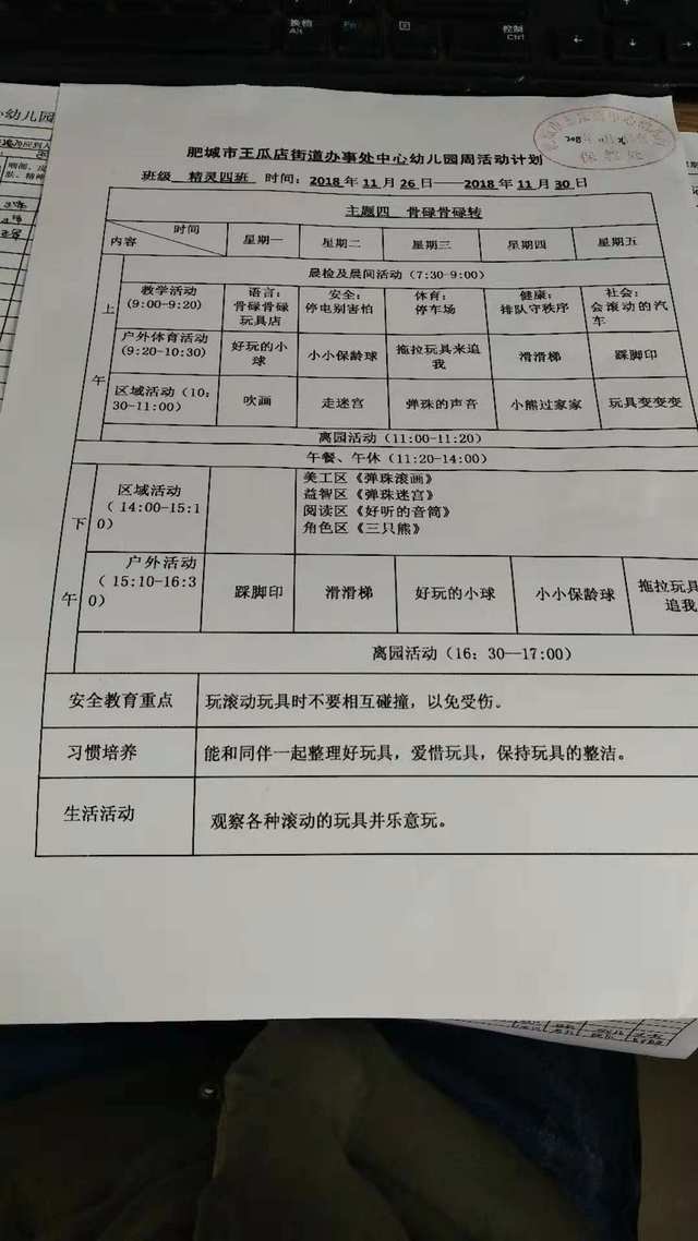 肥城市王瓜店街道办事处中心幼儿园周活动计划