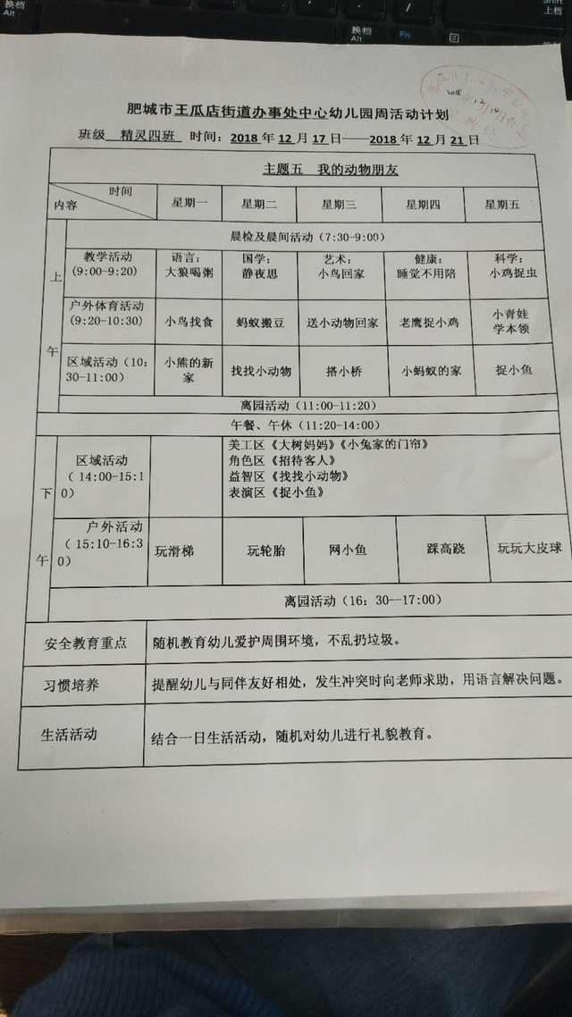 肥城市王瓜店街道办事处中心幼儿园周活动计划