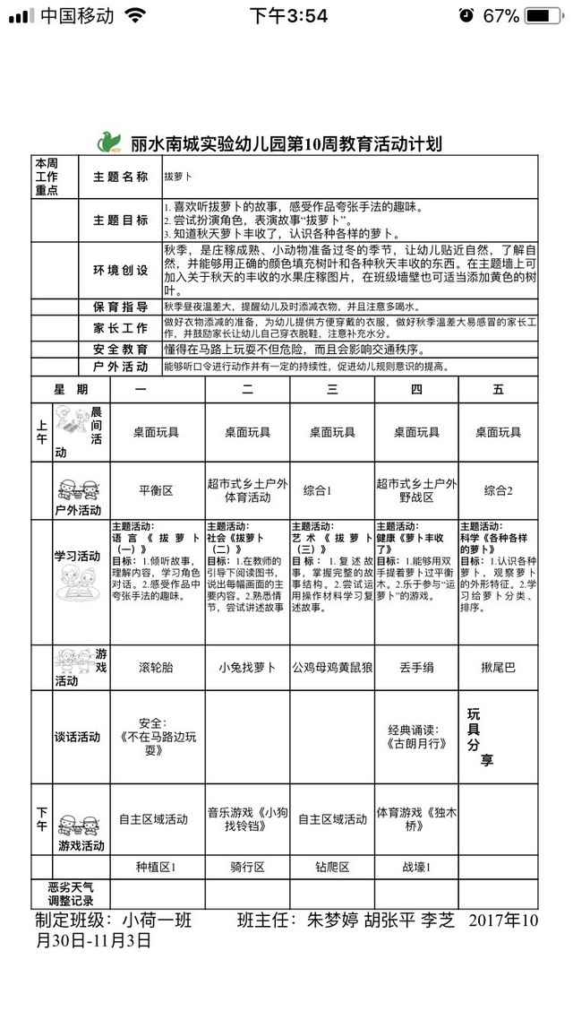 小荷一班第10周计划(2017上)