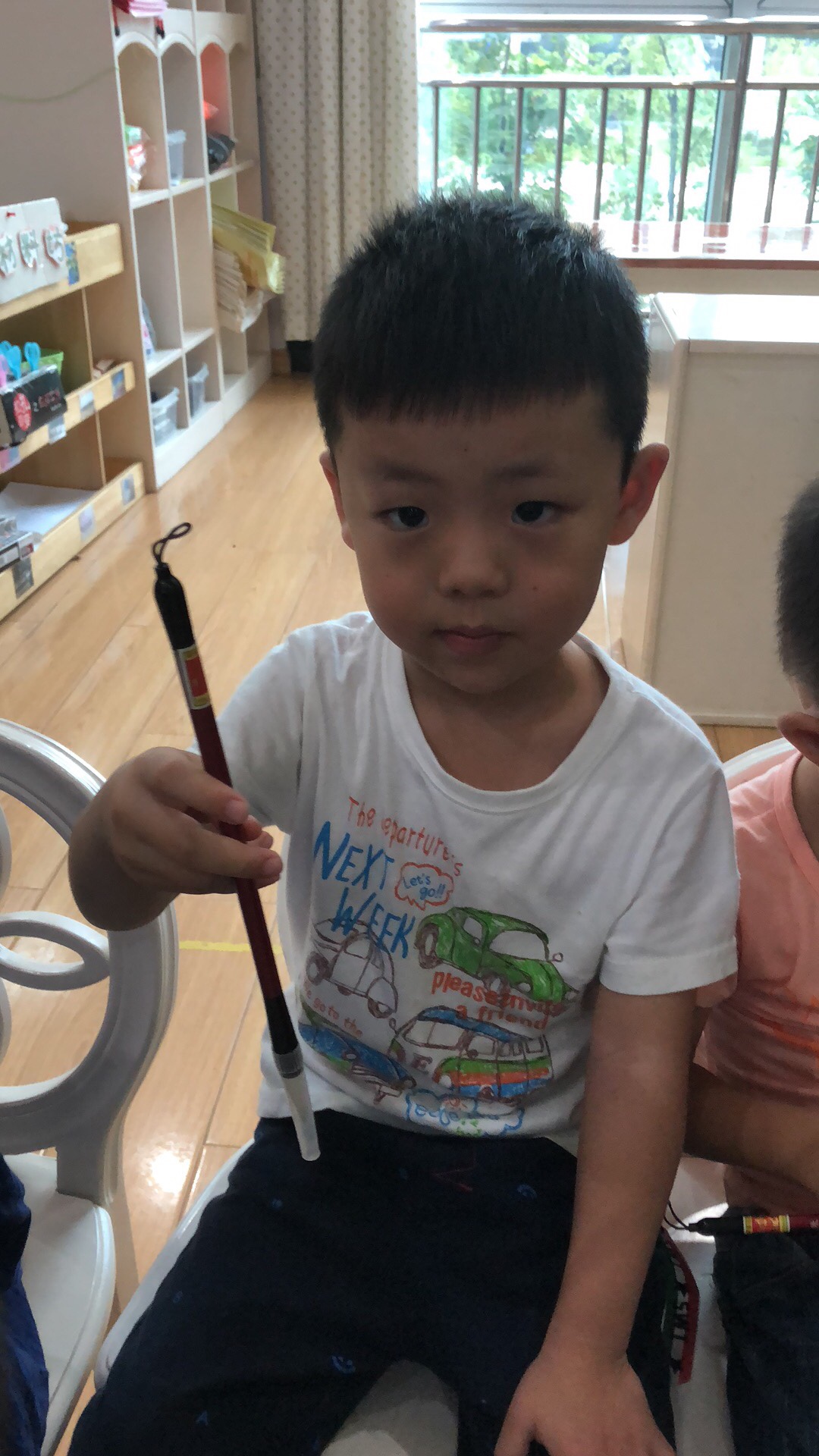相片描述:第一次拿毛笔,我们的水墨画要