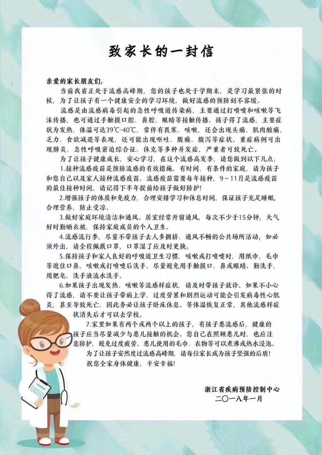 致家长的一封信 如何预防流感