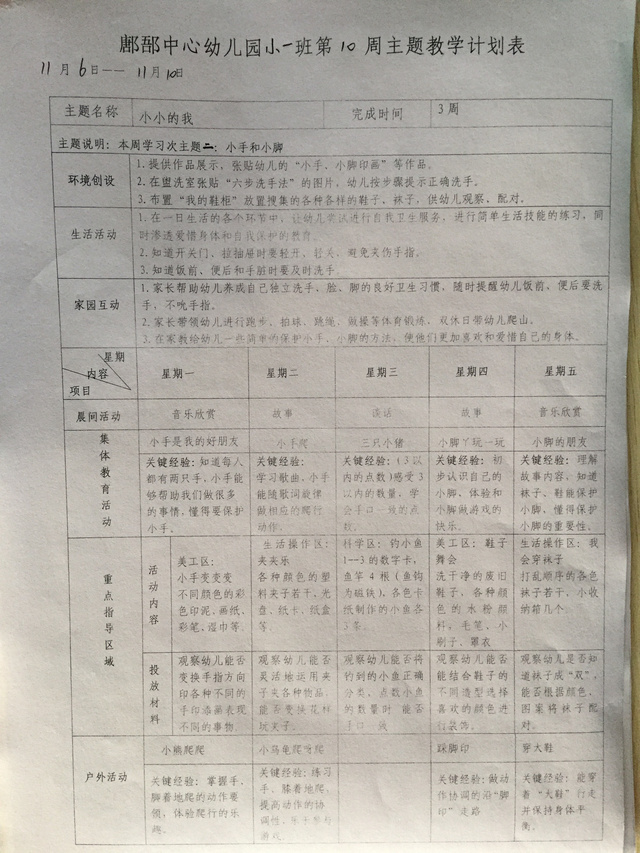 第10周主题教学计划表