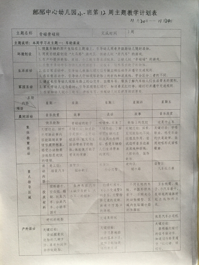 第12周主题教学计划表