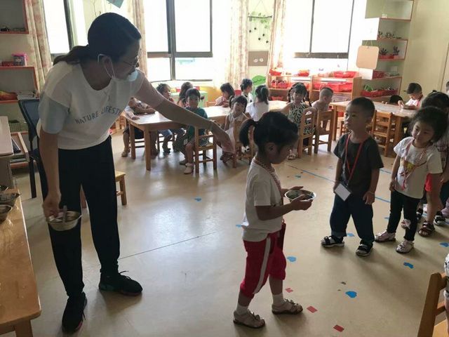 入园第一天 排队取餐 入园第二天 集体游戏活动