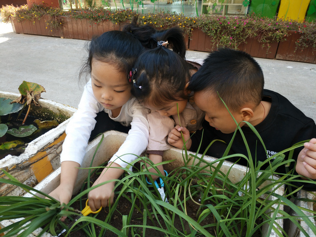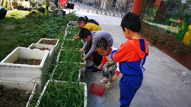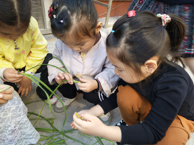 大蒜简介:大蒜 又叫蒜头、大蒜头、胡蒜、葫、独蒜、独头蒜,是蒜类植物的统称。半年生草本植物,百合科葱属,以鳞茎入药。春、夏采收,扎把,悬挂通风处,阴干备用。每一蒜瓣外包薄膜,剥去薄膜,即见白色、肥厚多汁的鳞片。有浓烈的蒜辣气,味辛辣。有刺激性气味,可食用或供调味,亦可入药。地下鳞茎分瓣,按皮色不同分为紫皮种和白皮种。大蒜是秦汉时从西域传入中国,经人工栽培繁育,具有抗癌功效,深受大众喜食。 记录人:强俊 背景: 峨山园坐落在风景秀丽的峨山脚下,结合独有的自然生态环境,建设了具有田园风格的绿色园所环境,开展自然原生态体验式园本课程,通过种植活动能把孩子带进充满神秘的大自然,给孩子们带来无穷的快乐。 栽种:孩子们在保安爷爷的帮助下种植大蒜,小班的弟弟妹妹利用餐后散步或户外活动时去观察苗苗的变化。 生长: 2018年10月11日周四孩子们吃面食,中大班带小班小朋友到菜园观察大蒜变化,并收割大蒜叶给厨师清洗烹饪到面食中,将大蒜叶洒在汤中做香料,中午孩子们吃的特别香。 大蒜的叶子被我们修剪了一部分,接下来我们还会经常帮大蒜去浇水、松松土,看看苗苗会不会长高高哦。 整个活动孩子们了解了大蒜的基本特征,知道了吃大蒜对身体有好处,养成良好的饮食习惯。同时我也记录了孩子第一次在园的趣味涂鸦,我眼中的苗苗,孩子们用自己的小手画出在跳舞的蒜叶。大带小种蒜、浇水、施肥、收获整个过程让孩子们体验了自己劳动收获的快乐,来自于大自然的课程:孩子们通过看看、摸摸、尝尝、嗅嗅、画画、玩玩,知道了样样蔬菜都要吃,粮食的来之不易,从而在潜移默化中养成珍惜粮食的好习惯。