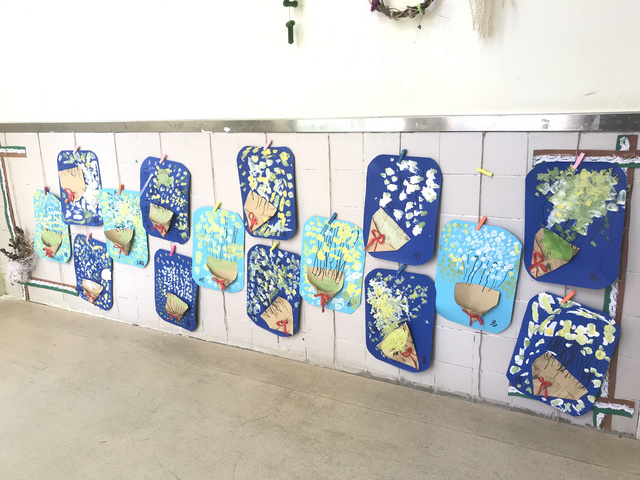 活动二:花儿送给好妈妈 孩子们自己动手折纸、点画等,运用说说、画画等绘画方式,表达爱妈妈的情感。