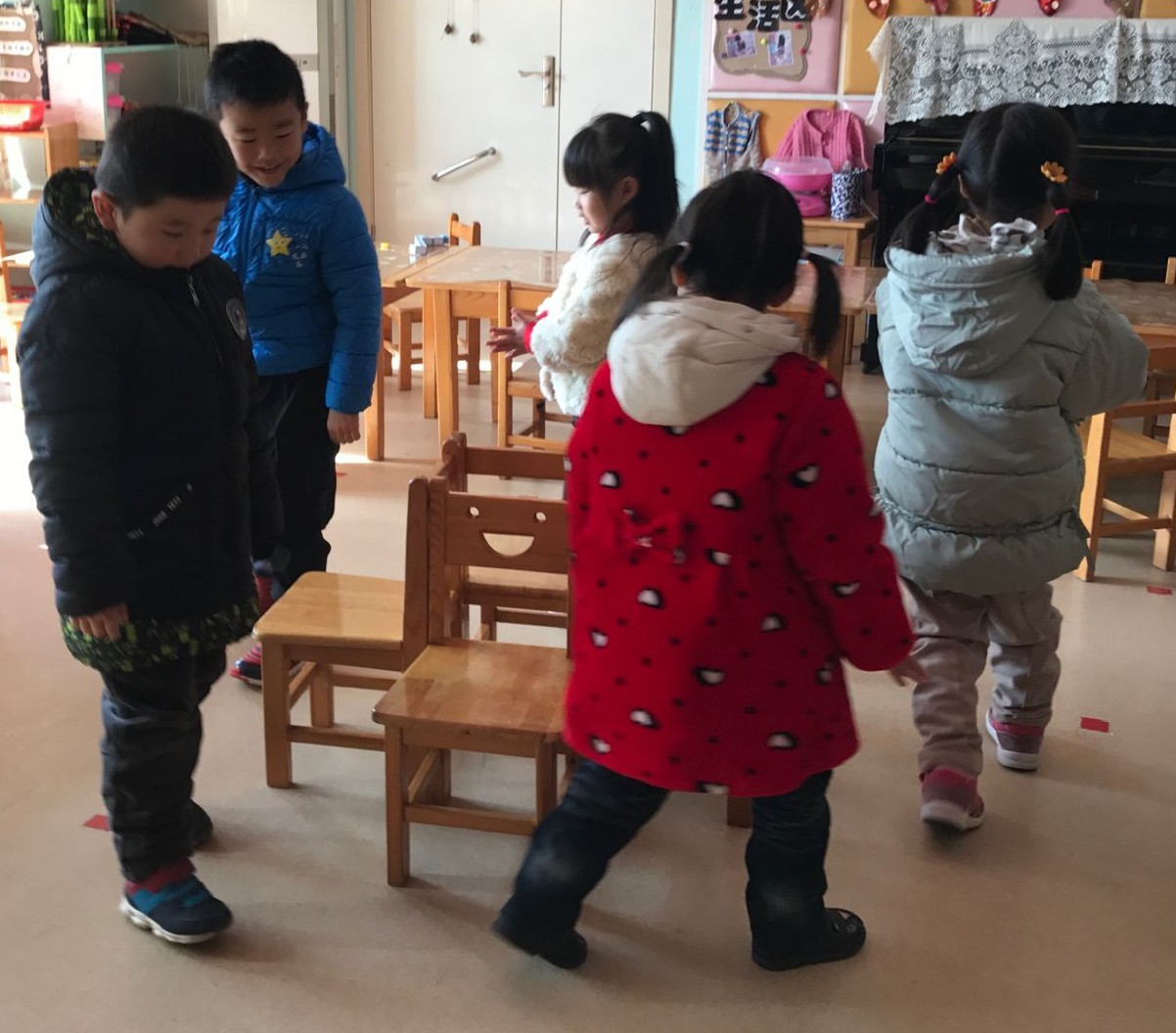 《幼儿园教育指导纲要》明确提出,幼儿教育必须遵循幼儿的身心发展规律,尊重幼儿的年龄特点和学习特点。以游戏为基本活动,使幼儿在游戏中获得自身的满足和发展。为此,我组织幼儿在班级开展了抢椅子的游戏,幼儿分成几组进行,教室中间放置比每轮玩游戏人数少一个数的小椅子,幼儿根据口令开始转圈,如果抢不到就要被淘汰出局,最后一个抢到椅子的获得冠军!每当我口令响起,孩子们在转圈的时候既兴奋又紧张,生怕我会喊停而错过了抢椅子的最佳时期,玩的不亦乐乎。旁边的孩子们则自发的为他们加油打气,好不热闹。 抢椅子游戏是我们传统民间游戏中流传非常广泛的一个游戏,孩子们十分感兴趣,在玩的过程中,幼儿积极投入,兴趣高涨。此次活动不仅发展了幼儿的走、跑等基本动作,锻炼幼儿动作的灵敏性和协调性,还提高了幼儿的竞争能力,让孩子们体会到了集体合作游戏的快乐。 |