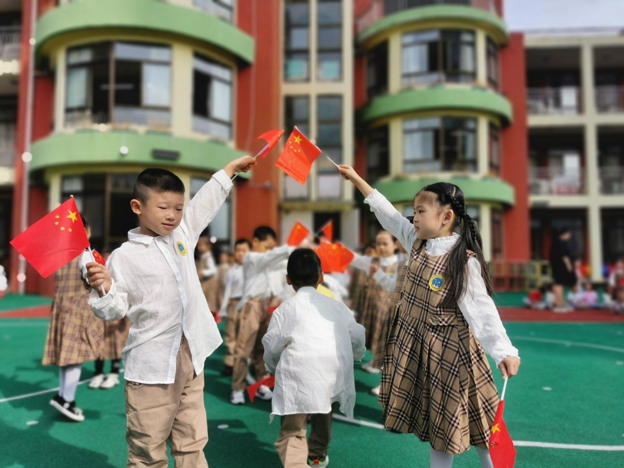 金秋好时节,润物细无声。下周我们就要迎来祖国妈妈71岁的生日了,在这个举国同庆的日子里,我们大二班的老师带领孩子们开展了庆祝国庆的一系列活动。 升国旗、跳旗操 少年强则国强,少年智则国智。培养幼儿的爱国主义情感应该从娃娃抓起,伴随着庄严的国歌声,五星红旗冉冉升起,那肃穆的气氛感染者在场的每一个人,带给孩子们无比的震撼和激动。跳旗操则是孩子们送给祖国妈妈的另一份礼物,在欢快的音乐声中,孩子们手拿五星红旗整齐划一的做着动作,用挥舞的旗帜向祖国致敬。 画天安门 童心看世界,画语展未来。在班级里,我们向幼儿讲解了国旗、国徽、国庆节的含义及由来,加深孩子们对国庆节的认识。孩子们则充分发挥自己的想象力绘画出具有象征意义的天安门,在动手操作中,感受国庆节的欢乐气氛。 本次国庆系列活动,孩子们把爱国情感化为了具体行动,在感受节日的氛围中加深了对祖国妈妈的热爱,让民族自豪感在每一个孩子的心中生根发芽,在小活动中体会到了大教育。 |