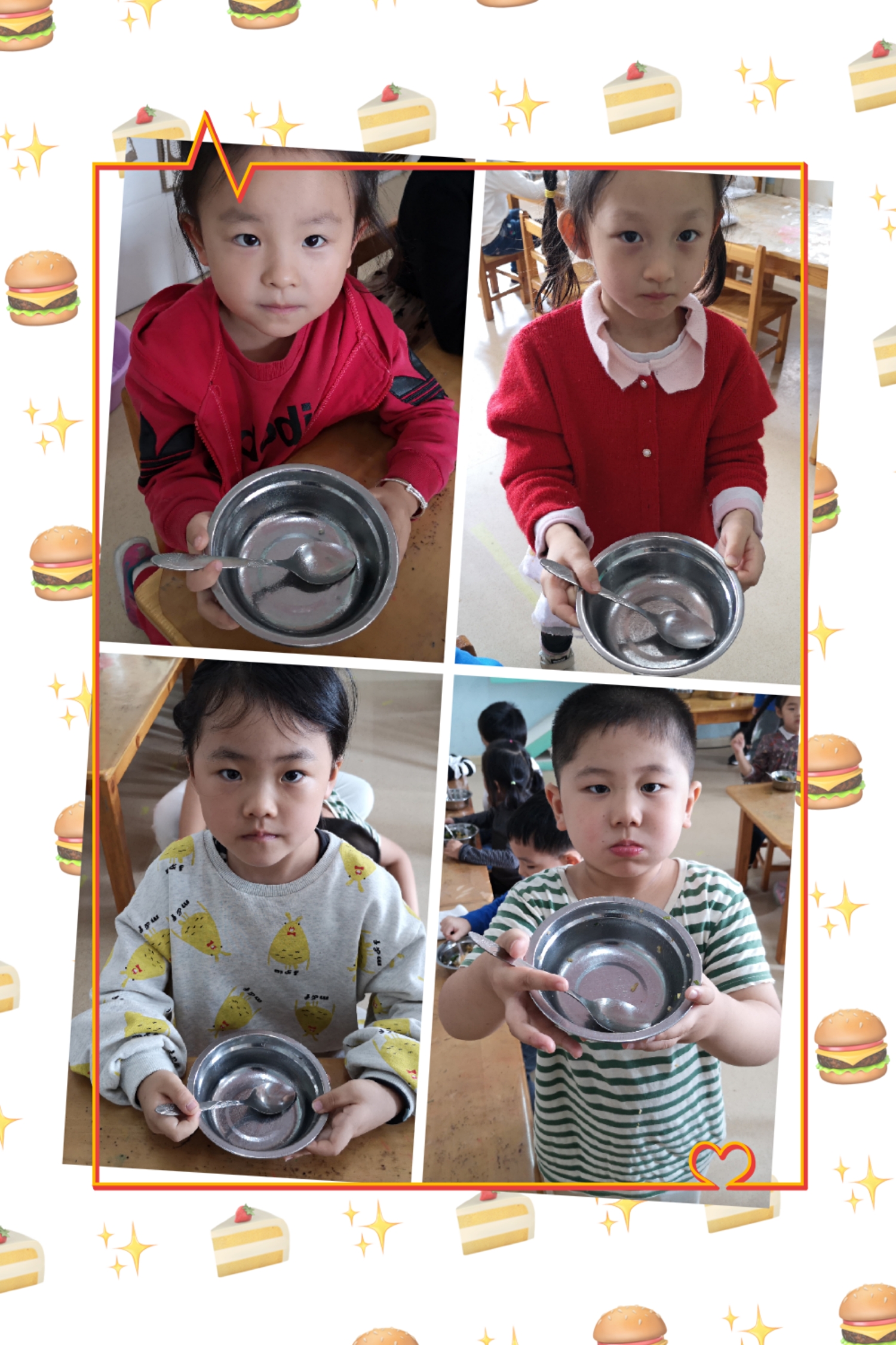 二、粒粒不易,珍惜粮食 “谁知盘中餐,粒粒皆辛苦。”在生活中,珍惜每一粒粮食。吃饭时吃多少盛多少,不扔剩饭剩菜,每次吃光碗里最后一粒米、盘里最后一棵菜。这是对食物的尊重,也是对农民伯伯的尊重。我们在班级设计了“我最棒”光荣榜,奖励给孩子们,孩子们个个争取做光盘小达人,为了能得到更多的小红花。 三、积极坚持,家园助力 我们倡议,既要在幼儿园里实行“光盘行动”,在家也要做到“光盘”。积极向身边的人宣传节约意识,制止浪费行为,让更多的人了解“光盘行动”,参与“光盘行动”。
