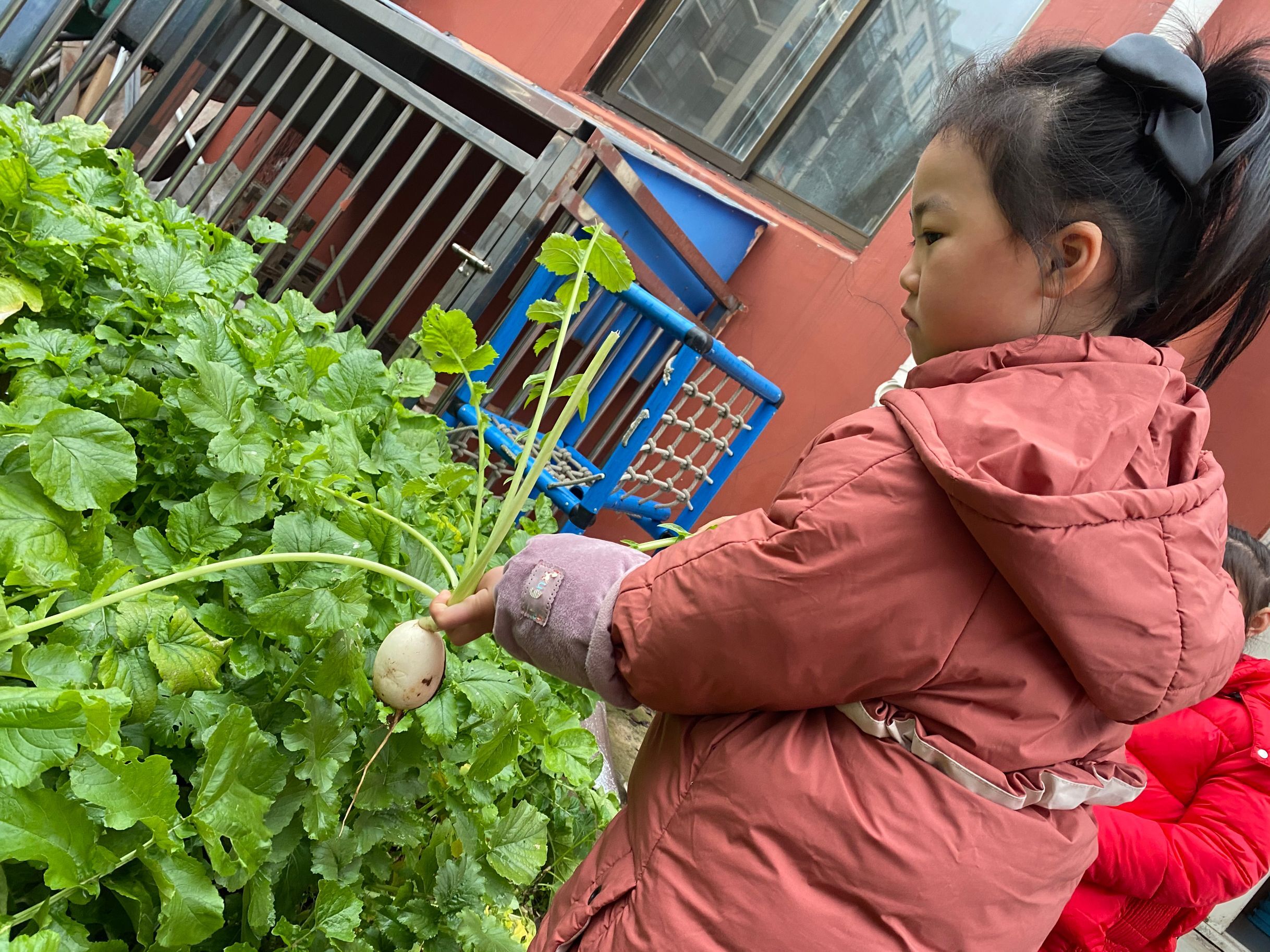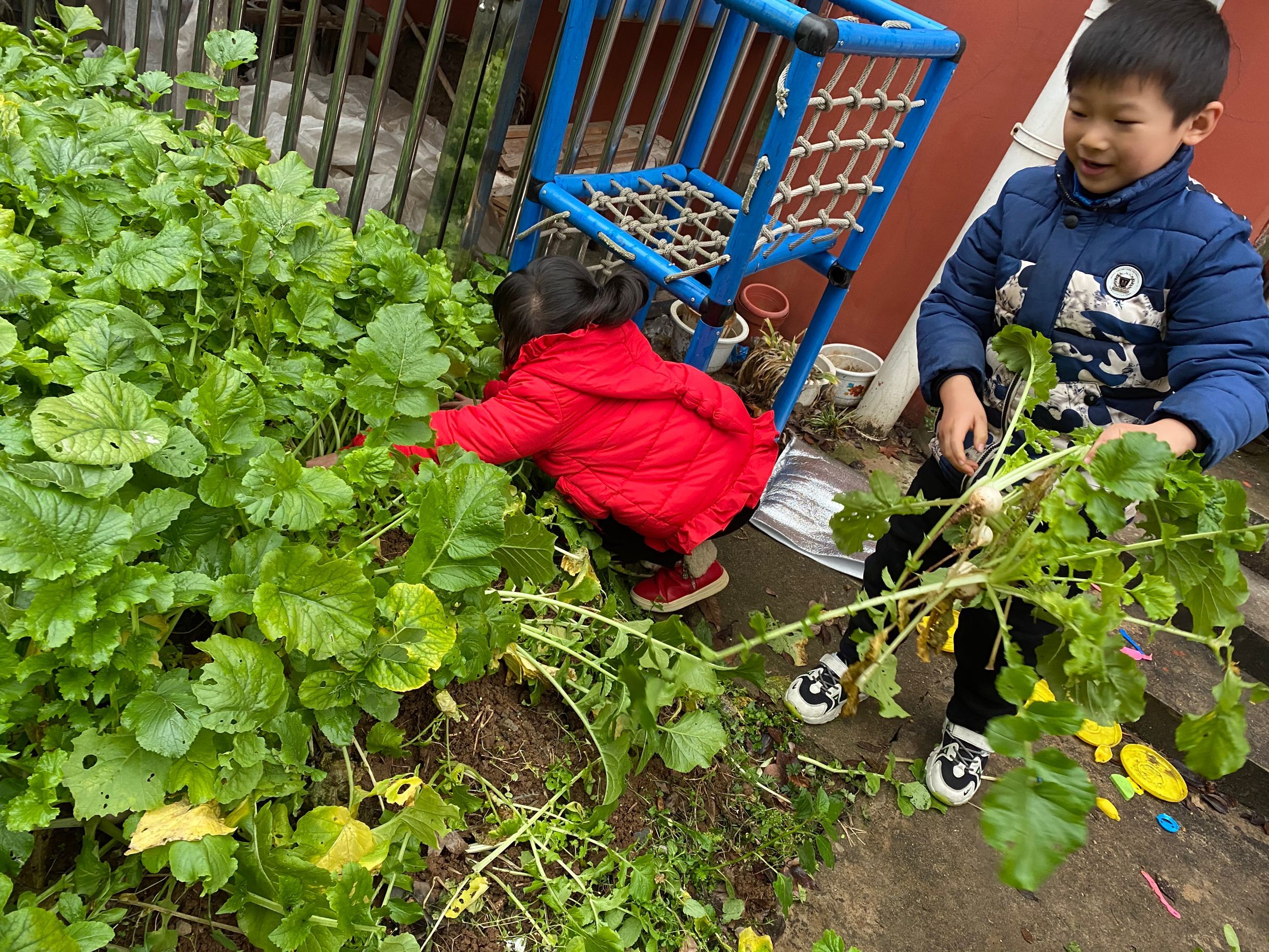 著名学前教育家陈鹤琴先生说:“大自然是我们的知识宝库,大社会是我们的生活宝库,是我们的活教材。”幼儿园的萝卜丰收了,为了让孩子们体验劳动的成就感和收获的快乐,我带领孩子们来到了小菜园进行拔萝卜的活动。 孩子们争先恐后地来到种植园,在种植园中互帮互助、结对进行拔萝卜,“老师你看!我拔的萝卜有条长长的尾巴”、“老师!我的这个萝卜叶子很大,萝卜很小”、“老师,我拔出来了”……孩子们激动的将自己的拔的萝卜和老师、小伙伴分享,不一会儿,菜地里成熟的白萝卜都被孩子们喜笑颜开的放在了收获的篮子中。 本次拔萝卜的活动让孩子们在亲身体验中掌握对植物的科学知识,了解了萝卜的生长特点和环境,掌握简单的劳动技能。它既增强了幼儿之间合作意识,又让幼儿懂得了"劳动后才会有收获"的不易。 拔萝卜,真快乐!这片小小的种植园地,成了峨山幼儿园开展实践活动的鲜活教材!其实,生活处处是教育,只要我们善于挖掘,善于利用,就一定会收到意想不到的教学效果。