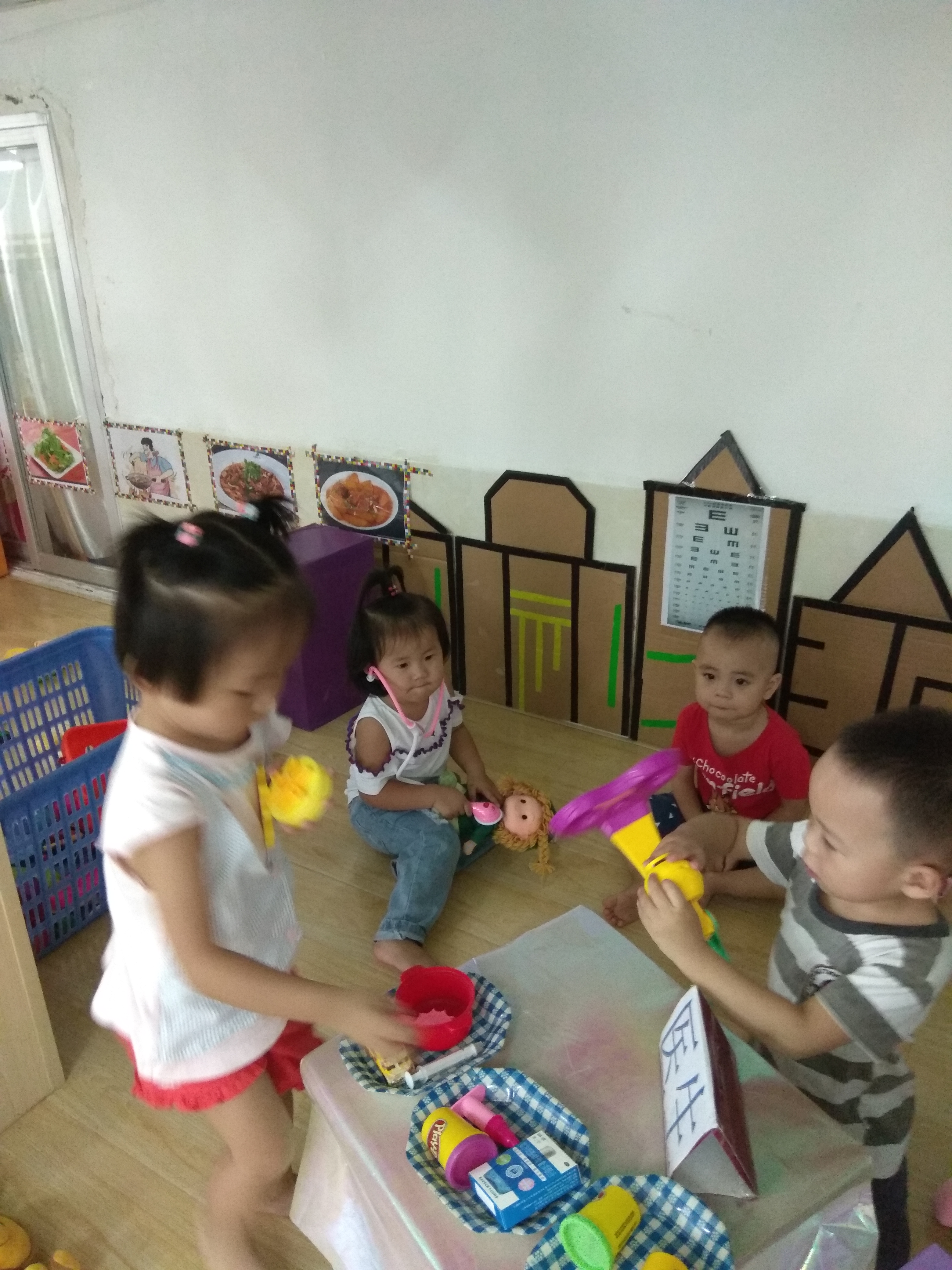小朋友在区域活动中玩的很投入