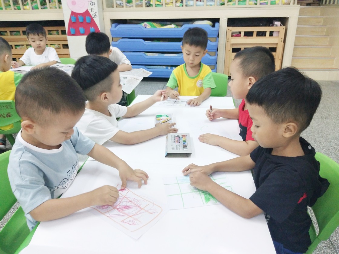 相片描述:认真画画的小朋友们