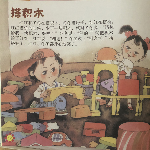 今天孩子们学习了语言活动《搭积木》,通过活动孩子们会观察图片,并能用简单的语句讲述图片中的内容,会说礼貌用语:“谢谢!”“别客气!”“请你给我一块积木,好吗?”,知道与小朋友游戏时要使用礼貌用语,友好地玩游戏。