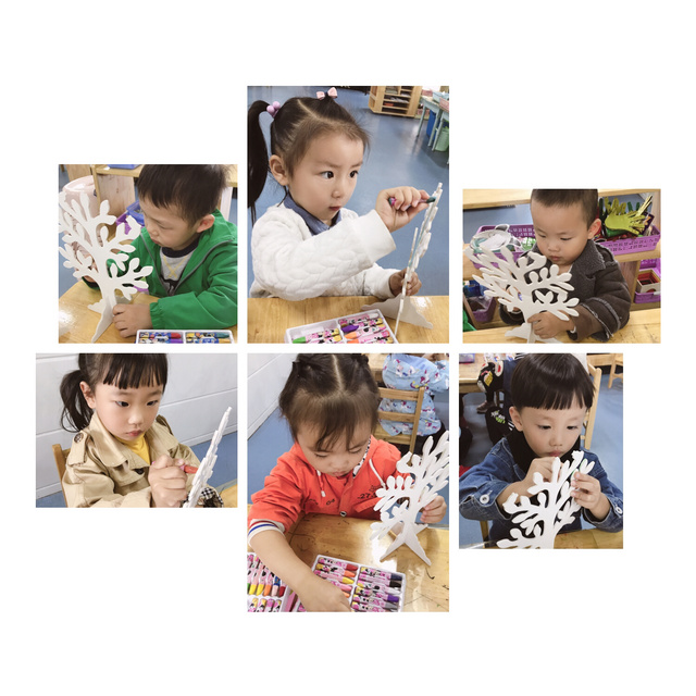 秋天到了,秋风吹来了,小树叶离开了树妈妈,届时小朋友们也亲近了大自然,收集很多很多的小树叶,并且大朋友也参与带着宝贝们创作了树叶粘贴画,在这深秋之季一眼望去,眼前少不了树叶凋零的大树妈妈,孩子们都非常喜欢这样的大树妈妈,也想装扮一颗漂亮的大树妈妈,于是我们带宝贝们一起制作了漂亮的大树(手工活动),活动中孩子们自己动手装扮大树妈妈,每一位孩子都是那么的认真、专注,表达了自己对大树妈妈的喜爱……