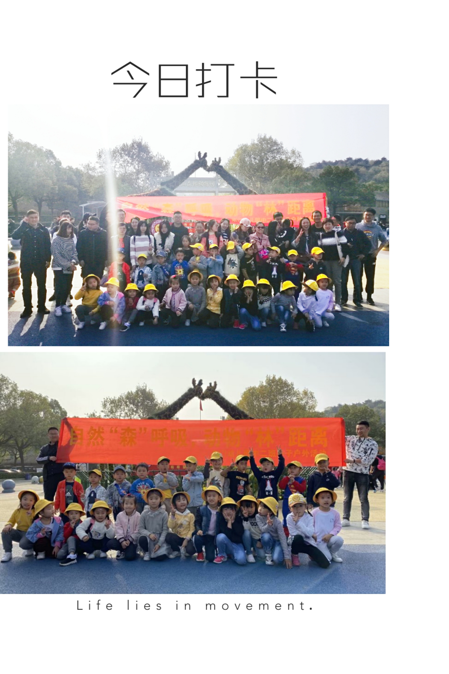11月9日(星期六)在爸爸妈妈的陪伴下,孩子们来到了红山森林动物园,9:30我们在大门口集合拍照留念。