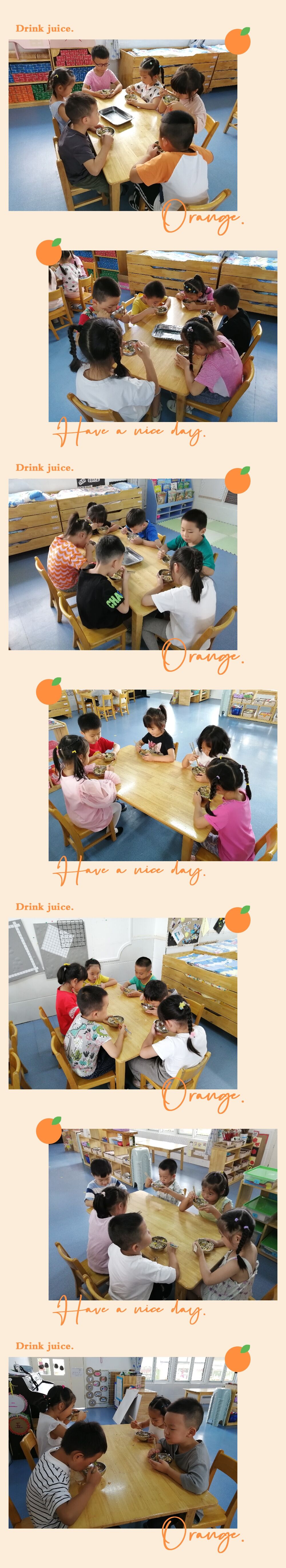 多吃饭,不挑食,身体棒,孩子们吃的好香,吃完还要相互看看碗里的饭吃干净没有。今天让我感受到孩子们真的是长大了,一个个知道多喝水了,不用老师跟着碎碎念孩子们也知道自主去喝水了。开心的幼儿园生活就这样继续着,感觉在幼儿园的一天过得好快呀,看来一切的美好都是享受和愉悦的!